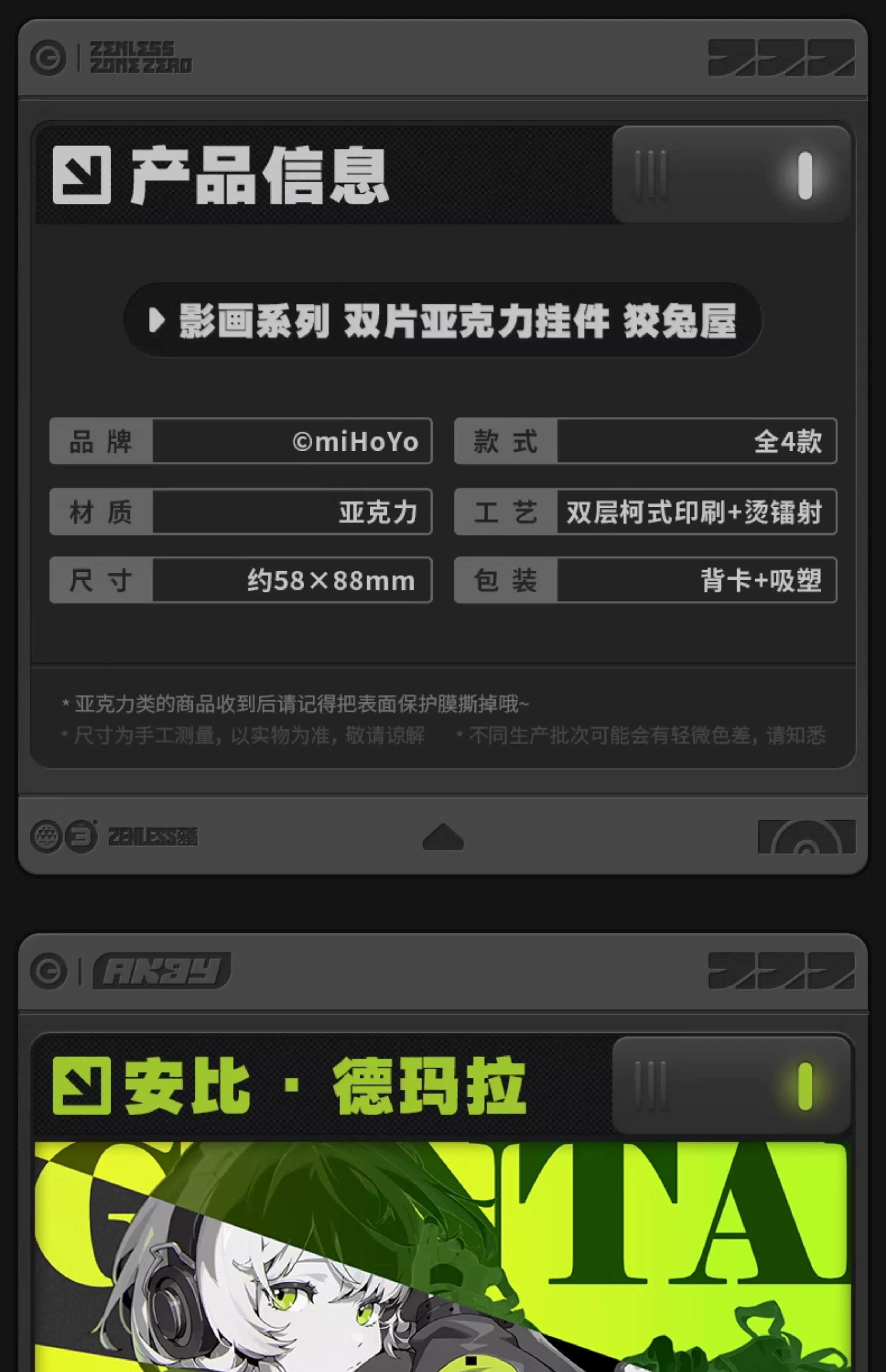 Cunning Hares Mindscape Cinema 2-Piece Acrylic Pendant | Zenless Zone Zero