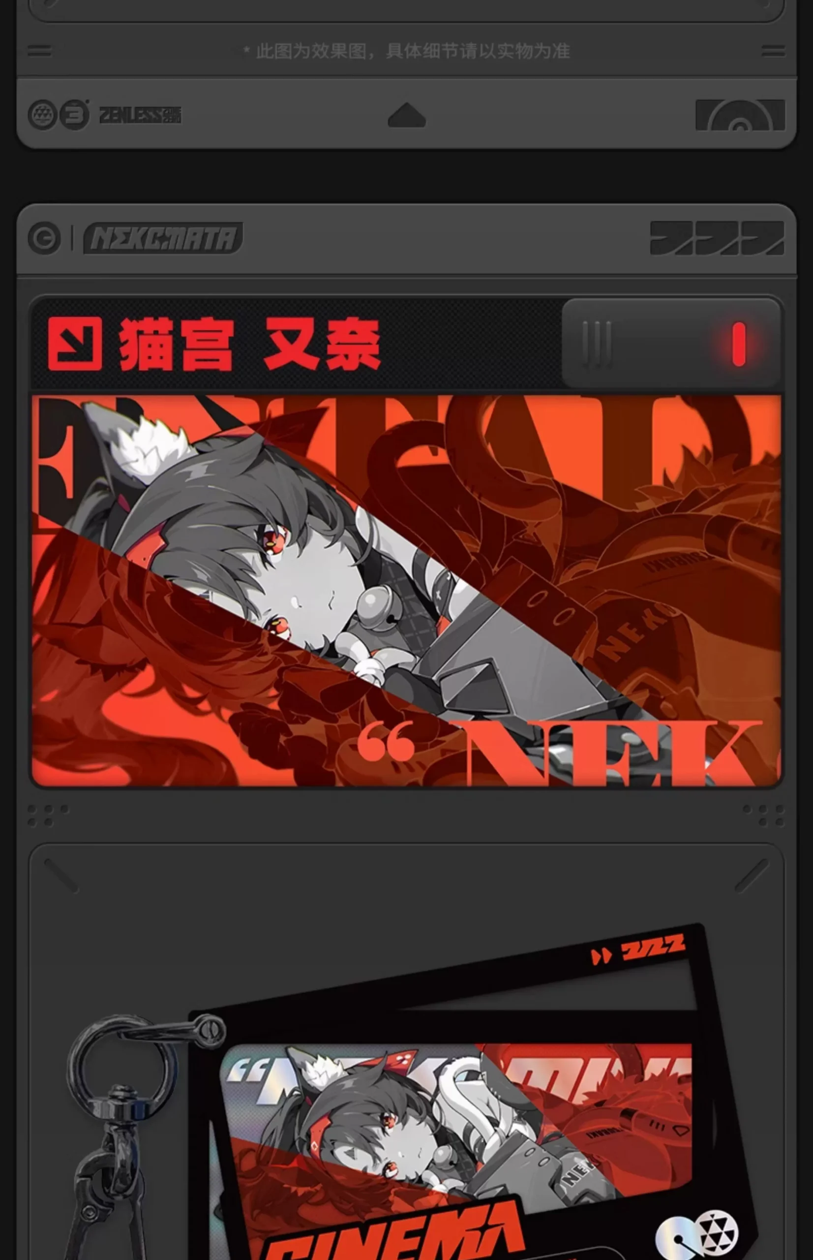 | Character | Anby Demara, Billy Kid, Nekomiya Mana/Nekomata, Nicole Demara |