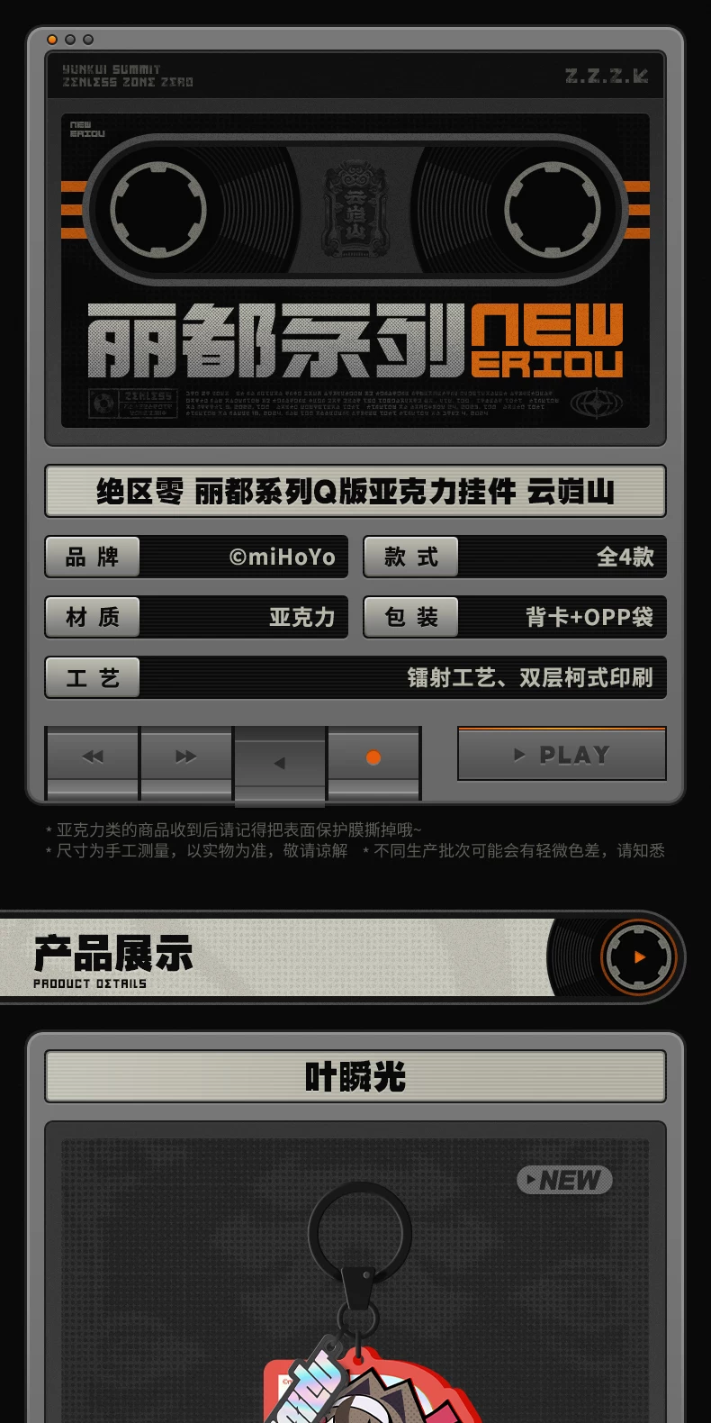 Yunkui Summit Chibi Acrylic Keychain | Zenless Zone Zero